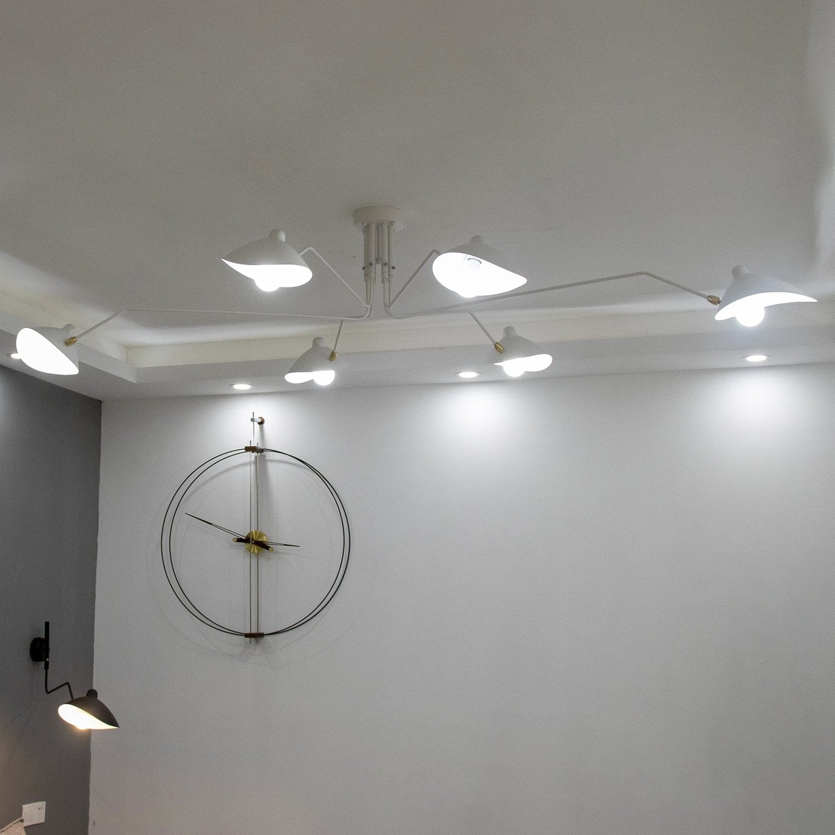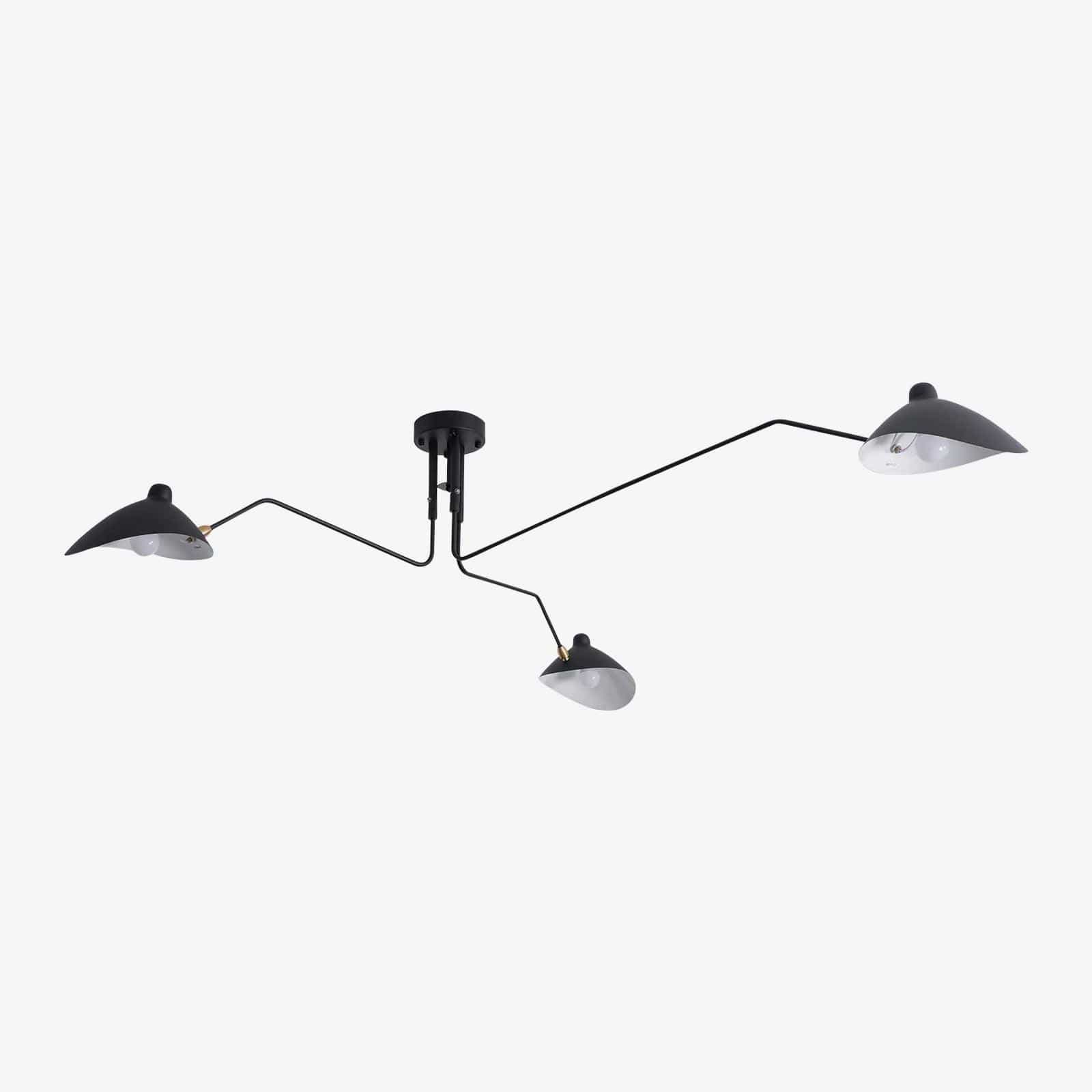 The Serge Mouille Ceiling Lamp A embodies mid-century design, featuring multiple adjustable arms that provide both functional lighting and sculptural elegance. Made from high-quality materials, including steel and aluminum, this fixture guarantees durability and a timeless aesthetic. The minimalist shape and versatile functionality make it a striking addition to contemporary interiors, enhancing the atmosphere while serving as a focal point.